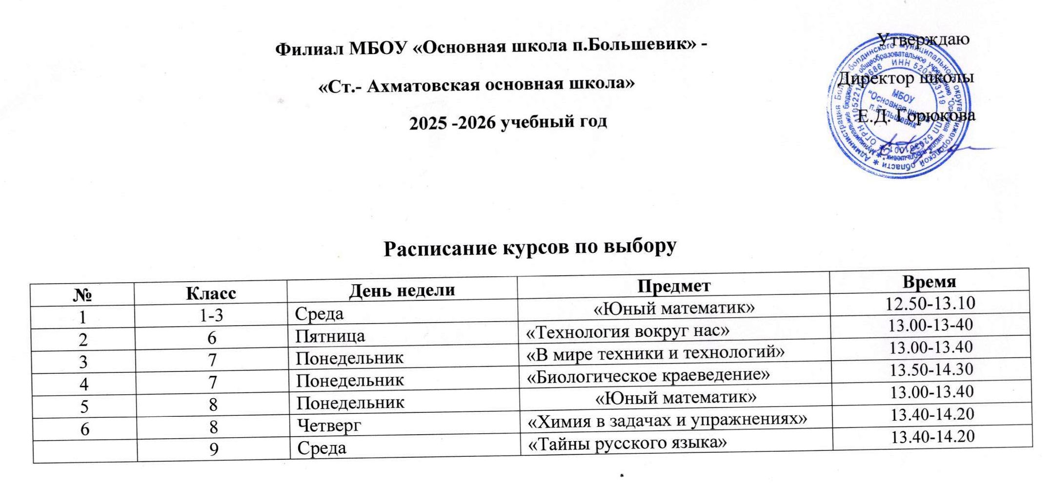 Расписание курсов по выбору