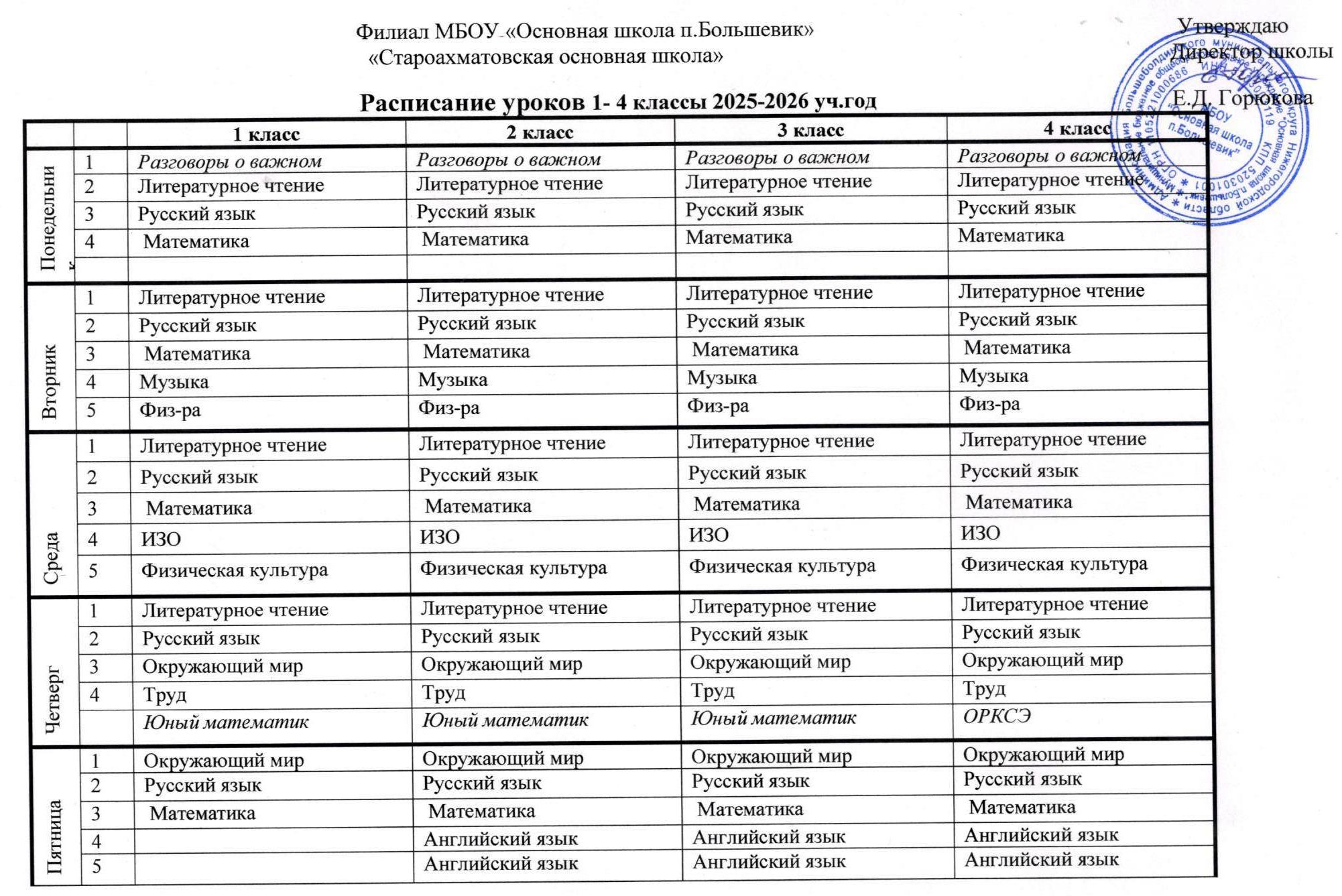 Расписание уроков. 1 - 4 классы