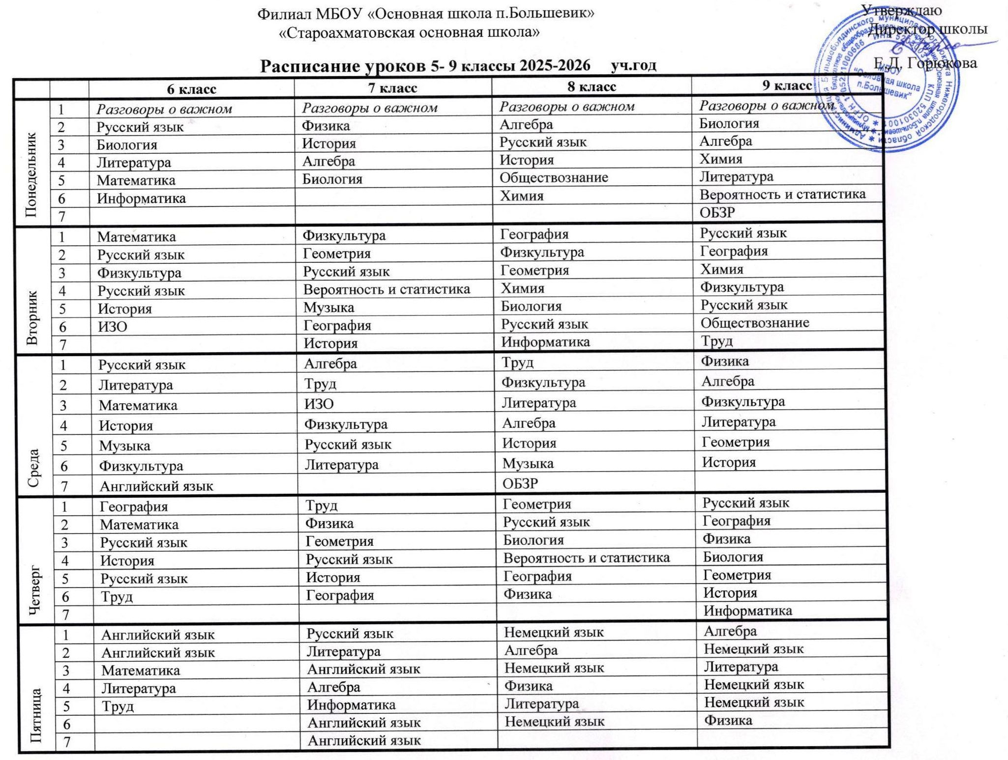 Расписание уроков . 5 - 9 классы